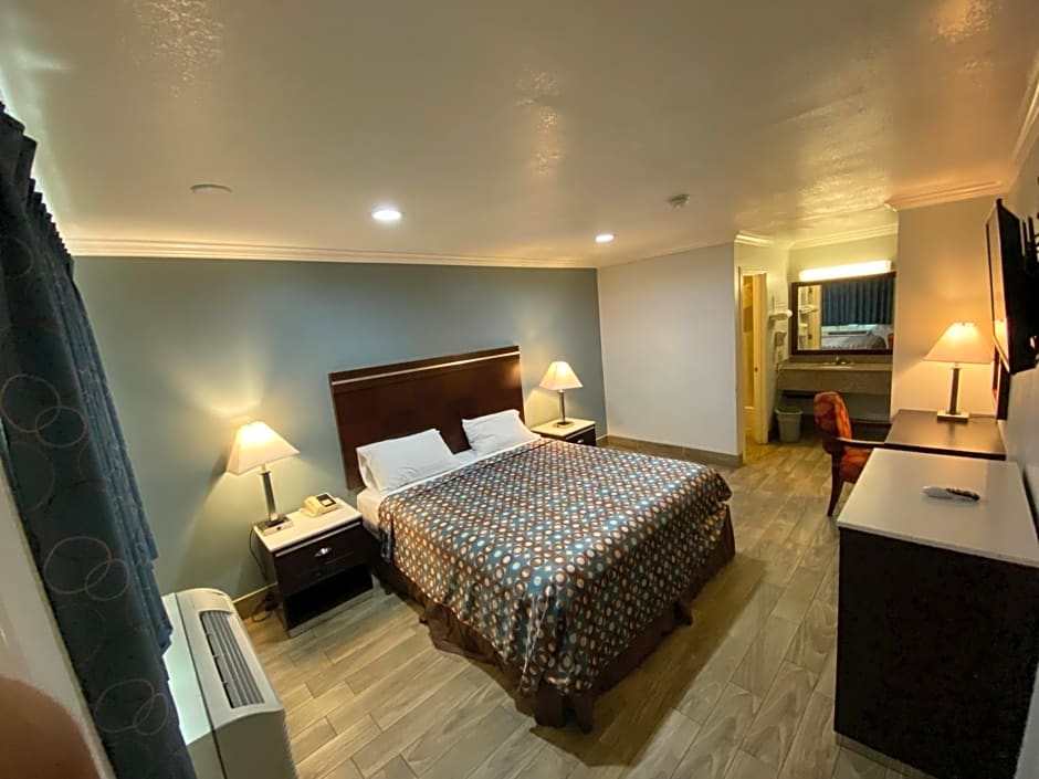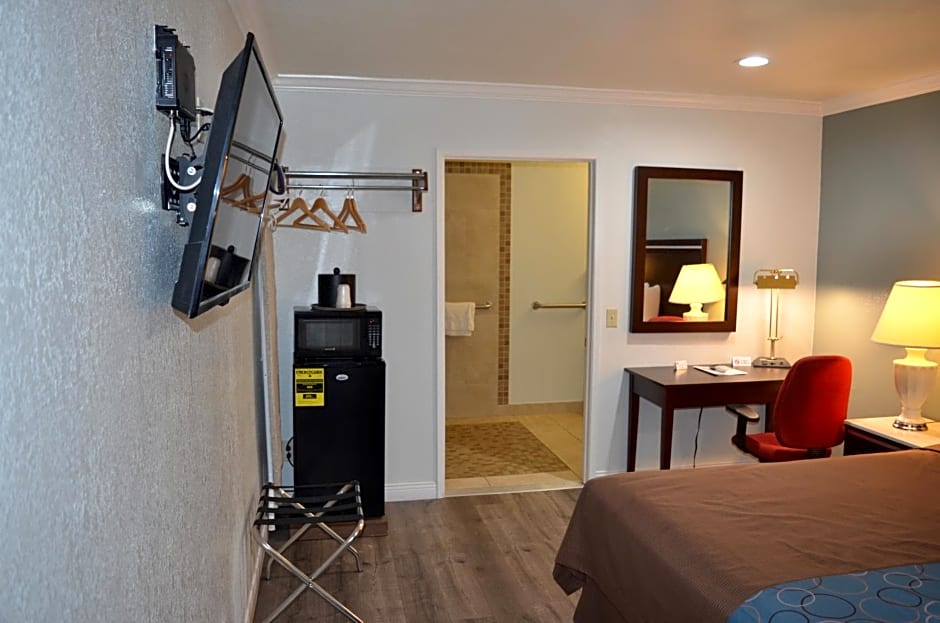 Equipped with air conditioning, this room includes a cable TV and an private bathroom. A microwave and refrigerator are also included.